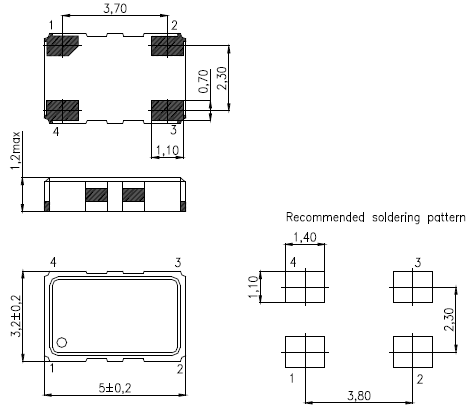 T-53A4085KXH-20.000MHz,5032mm,KVG溫補晶振,TCXO振蕩器,低抖動晶振,尺寸圖