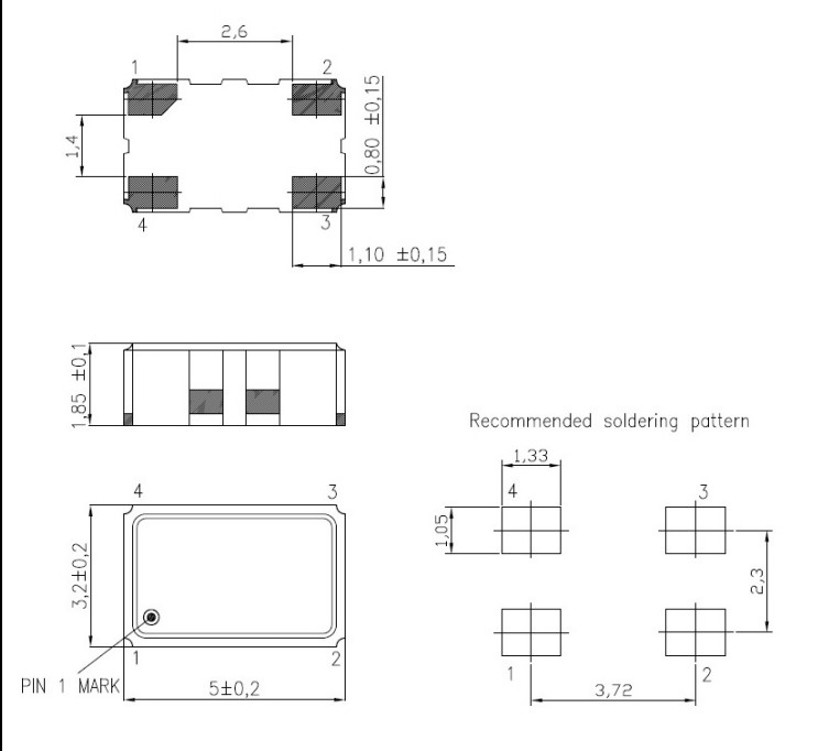5032mm,T-53S3D4085KXH-LF-16.000MHz,KVG低功耗晶振,T-53S3,有源晶振,尺寸圖