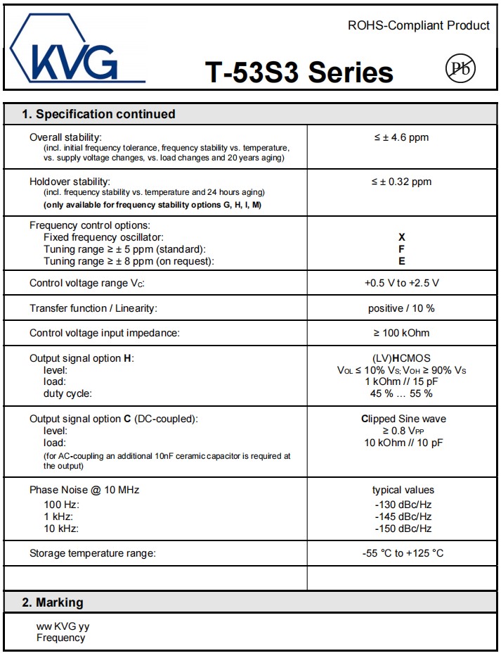 5032mm,T-53S3D4085KXH-LF-16.000MHz,KVG低功耗晶振,T-53S3,有源晶振,參數表