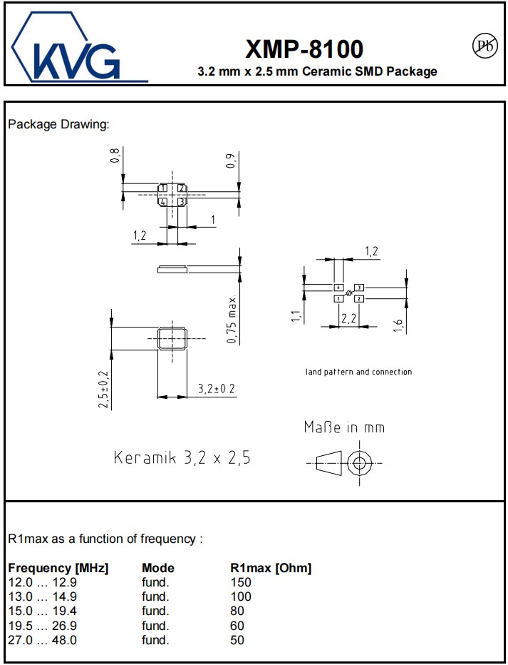 XMP-8135-4C-20pF-45MHz,3225mm,45MHz,KVG進口晶振,XMP-8100,石英晶體諧振器,參數表