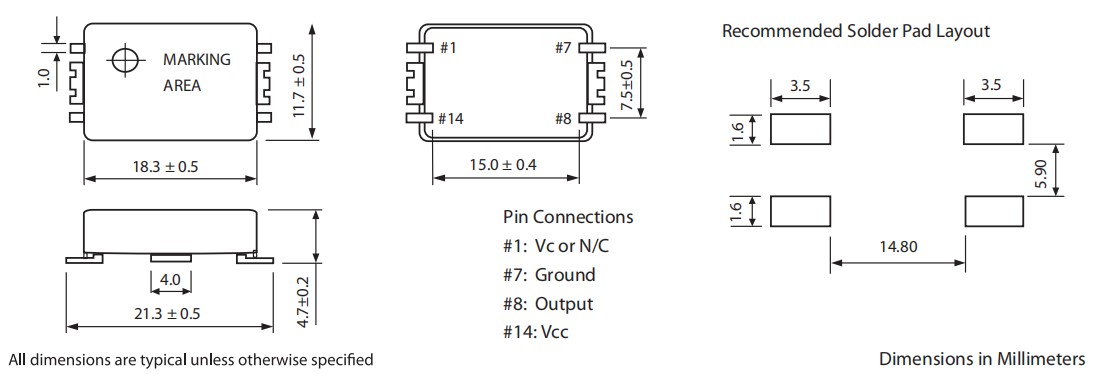 MTI-milliren溫補晶體振蕩器,402系列有源晶振,低抖動晶振,SMD晶振,無線網絡晶振,尺寸圖