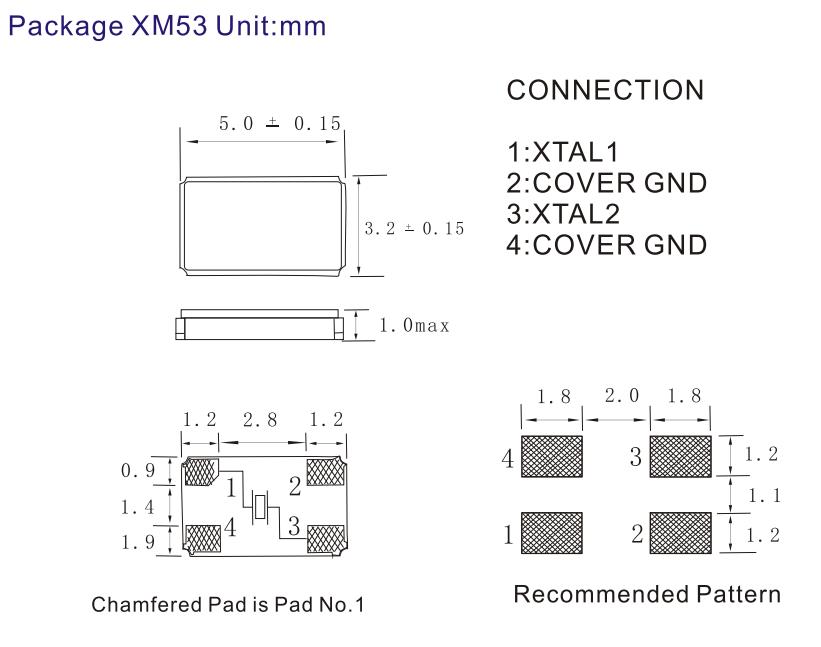 XM53-12P10FC10-XM53-T12M,5032mm,Macrobizes品牌,12MHz,電信應(yīng)用晶振,尺寸圖