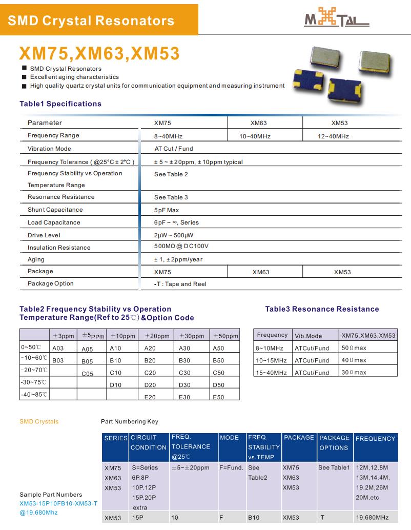 6035mm,XM63-15P20FE20-XM63-T19.2M,Macrobizes晶振,19.2MHz,無源晶振,參數表