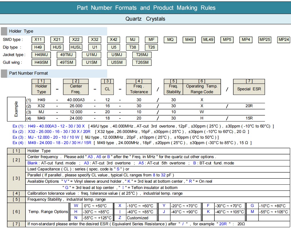 Frequency Tolerance | AT- cut : ± 10 ppm , ± 20 ppm or ± 30 ppm at 25°C |