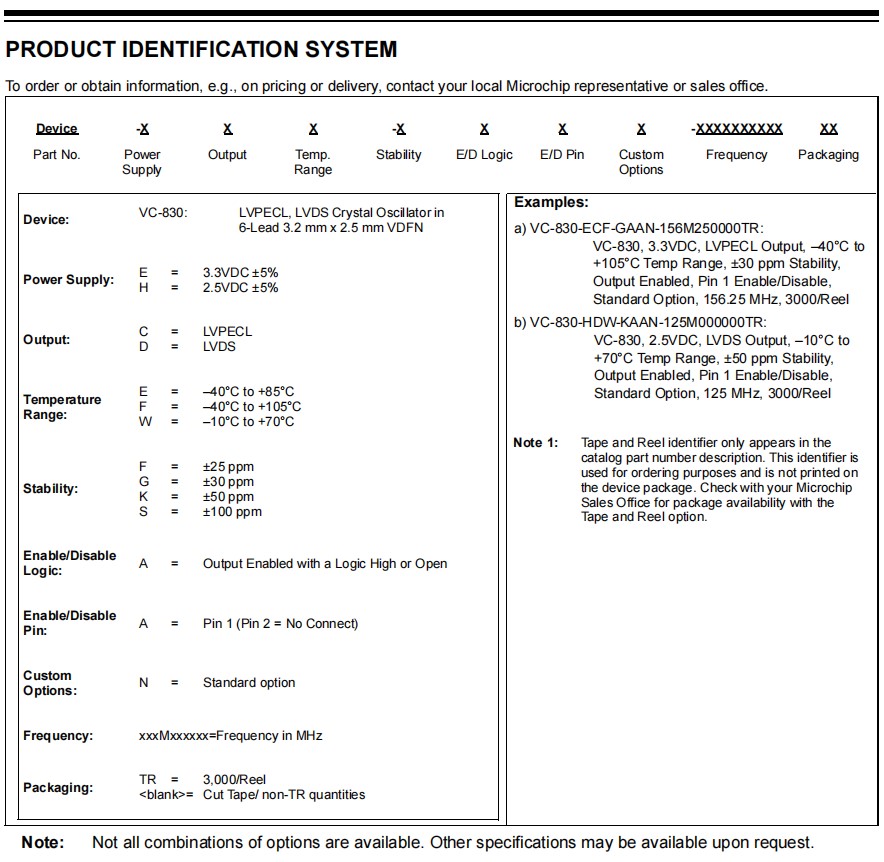VC-830-ECF-GAAN-156M250000TR,156.25MHz,3225mm,Microchip晶振,VC-830,差分晶振,參數表