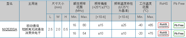 10ppm NX2520SA-30.000000MHZ 2520mm 30MHZ 平板電腦 參數表