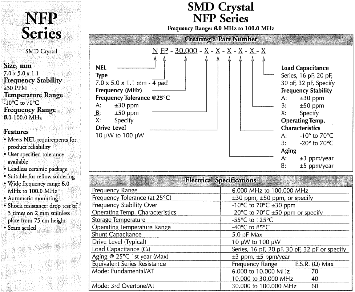 耐爾7050mm晶振,NFP-32.000-A-10-A-B-A-20,6G網(wǎng)絡(luò)設(shè)備晶振 參數(shù)表