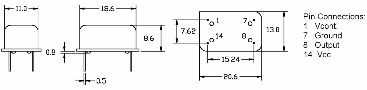 TC60-3,16.384MHz,TCXO,PDI品牌,14針通孔石英晶振,溫補晶振,航空航天應用晶振,尺寸圖