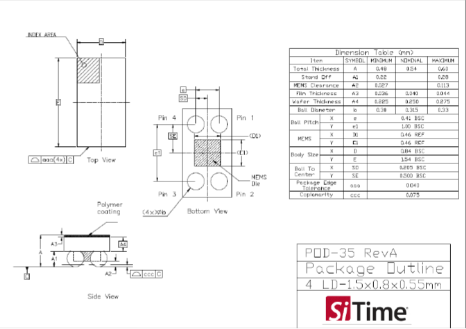 SiTime溫補晶振,SiT1576AI-J1-25-0512.288000Q,低抖動晶振,ULP輸入設(shè)備6G晶振,小體積晶振,尺寸圖