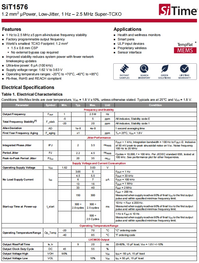 SiTime溫補晶振,SiT1576AI-J1-25-0512.288000Q,低抖動晶振,ULP輸入設(shè)備6G晶振,小體積晶振,參數(shù)表