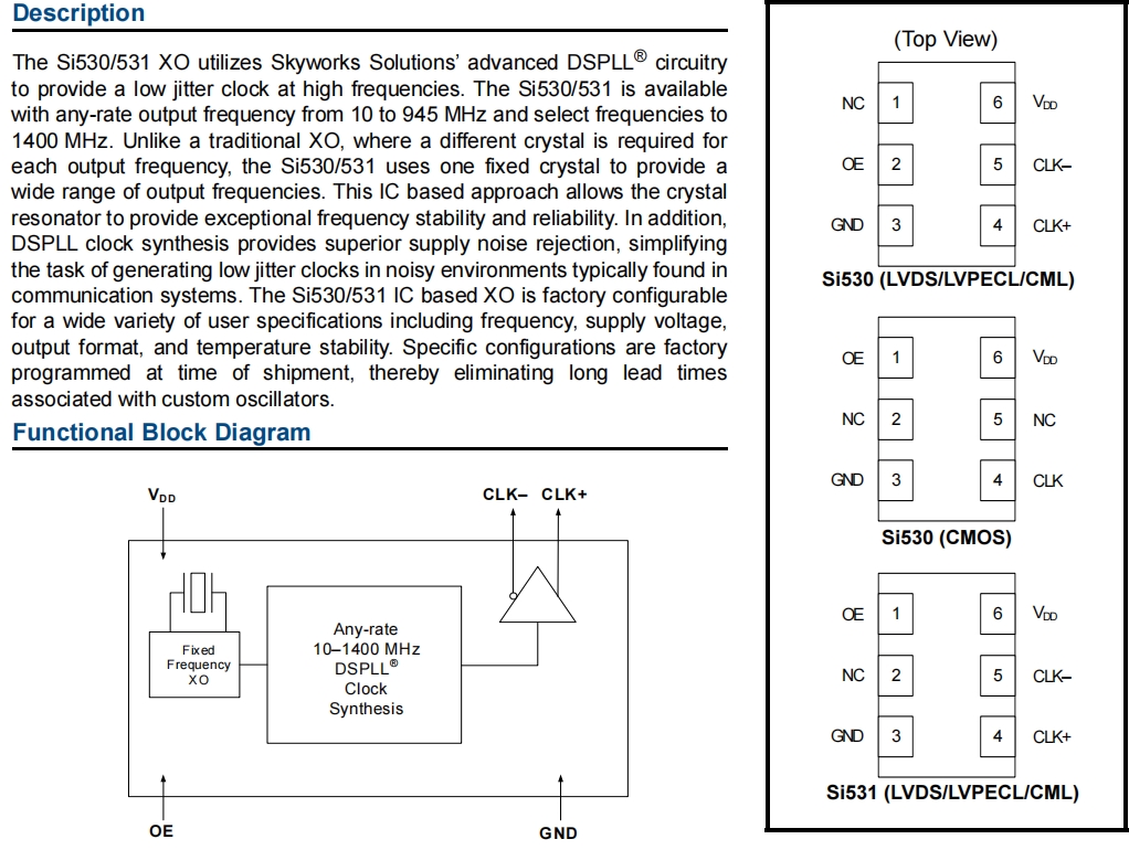 530AC200M000DG | Skyworks有源晶振 | XTAL OSC XO 200.0000MHZ LVPECL | Si530 | 200 MHz | LVPECL |