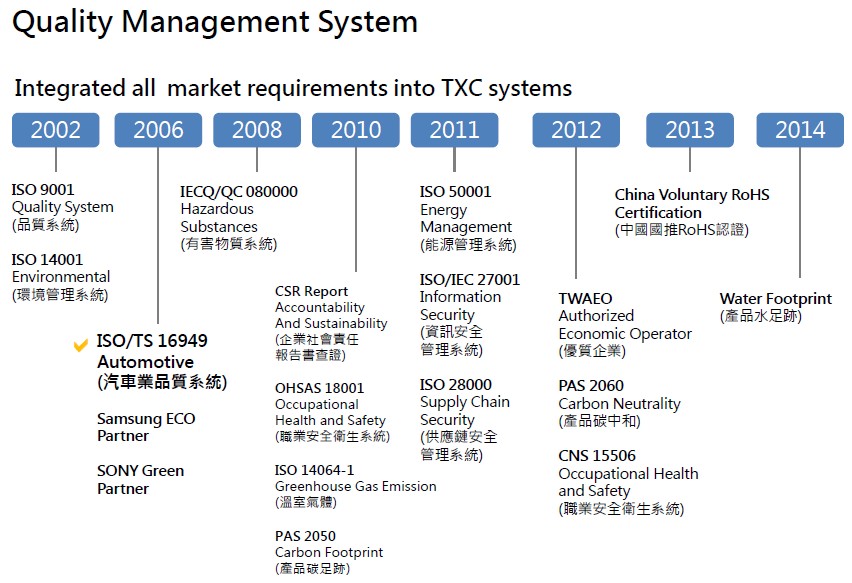 TXC目前專門從事這些類別的產品: