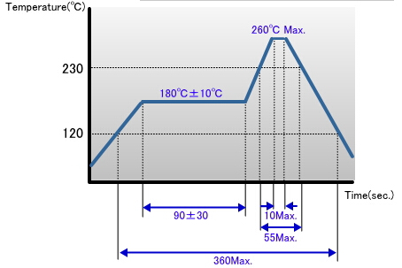 浸焊安裝,應該在10秒內溫度不高于260ºC.和注意不要熱整個晶體單元的安裝過程.直接安裝直立的建議(防止熱傳導水晶的主體單位).