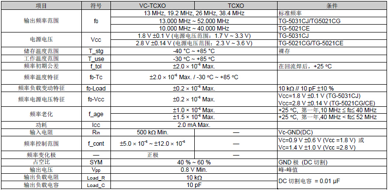 愛普生石英晶振,TG-5021CG溫補振蕩器,有源晶振,頻率范圍13MHz ~ 52MHz,電源電壓2.8V Typ.頻率溫度特征±2.0×10-6 Max.外部尺寸2.5×2.0×0.8mm,被廣泛應(yīng)用于手機 (CDMA, WCDMA, GSM),具有低噪音特性.