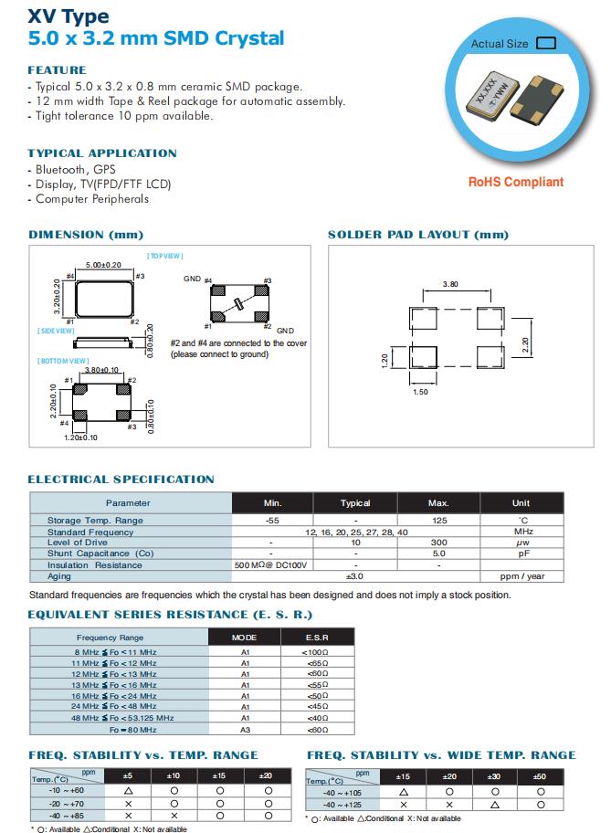 XVDGGHNANF-28.000000 | Taitien晶振 | XV | MHz Crystal | 28MHz | -40°C ~ 125°C |