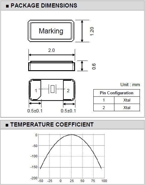 激勵功率 | DL | 1.0μW Max. | 推薦:100μW ~ 300μW |