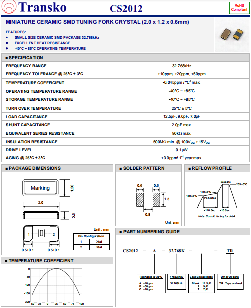 Transko晶振 | 單位 | CS2012晶振 | 石英晶振基本條件 |