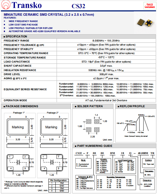 Transko晶振 | 單位 | CS32晶振 | 石英晶振基本條件 |