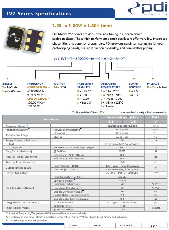 威爾威7050mm振蕩器,LV7-T-24000X-M-C-A-2-R-X,低抖動晶振,參數(shù)表