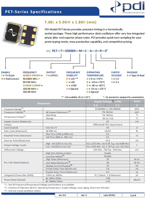 Wi2wi高性能晶振,PE7-T-C12000-M-C-D-3-R-X,低相位噪聲晶振,參數(shù)表