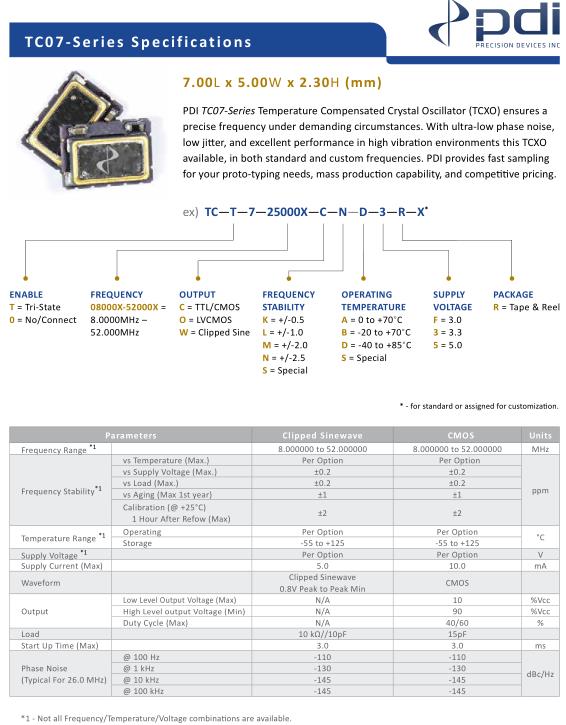 威爾威有源晶振,TC07溫補(bǔ)晶振,TCT7-26000X-OND3RX晶振,小型SMD有源晶振,從最初超大體積到現(xiàn)在的7050mm,6035mm,5032mm,3225mm,2520mm體積,有著翻天覆地的改變,體積的變小也使產(chǎn)品帶來了更高的穩(wěn)定性能,接縫密封石英晶體振蕩器,精度高,覆蓋頻率范圍寬的特點,SMD高速自動安裝和高溫回流焊設(shè)計,Optionable待機(jī)輸出三態(tài)輸出功能,電源電壓范圍:1.8V~5V,高穩(wěn)定性,低抖動,低功耗,主要應(yīng)用領(lǐng)域:無線通訊,高端智能手機(jī),平板筆記本W(wǎng)LAN,藍(lán)牙,數(shù)碼相機(jī),DSL和其他IT產(chǎn)品的晶振應(yīng)用,三態(tài)功能,PC和LCDM等高端數(shù)碼領(lǐng)域,符合RoHS/無鉛.