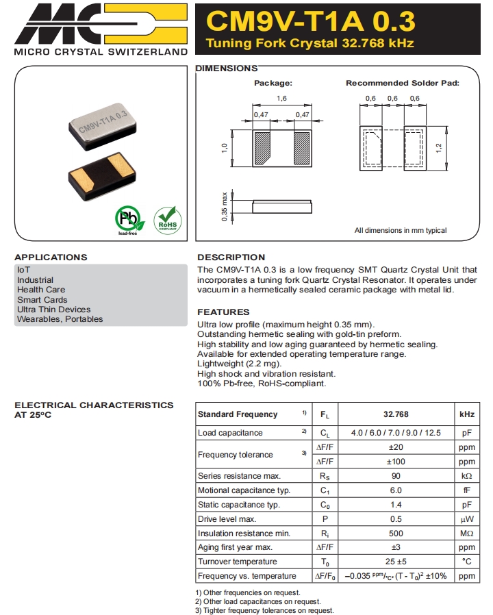 CM7V-T1A-100.000kHz-9pF-100PPM-TA-QC | Micro晶振 | 晶體 100.000 kHz 9.0 pF +/-100 PPM -40/+85C |
