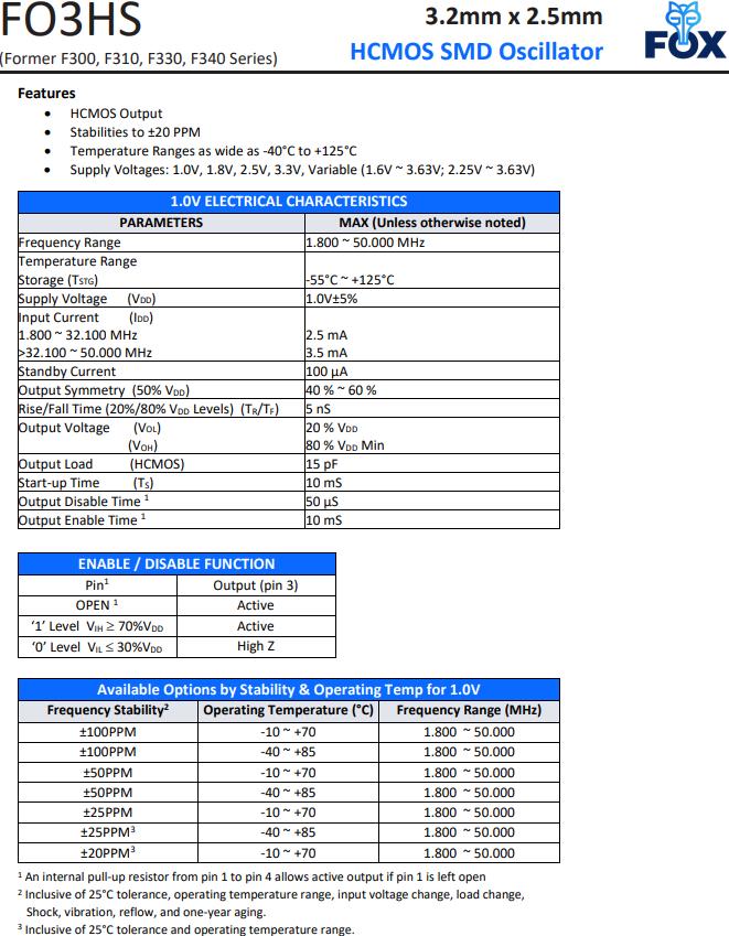 Fox Electronics | F535L | XO (Standard) | 50MHz | 3.3V | 4-SMD, No Lead |