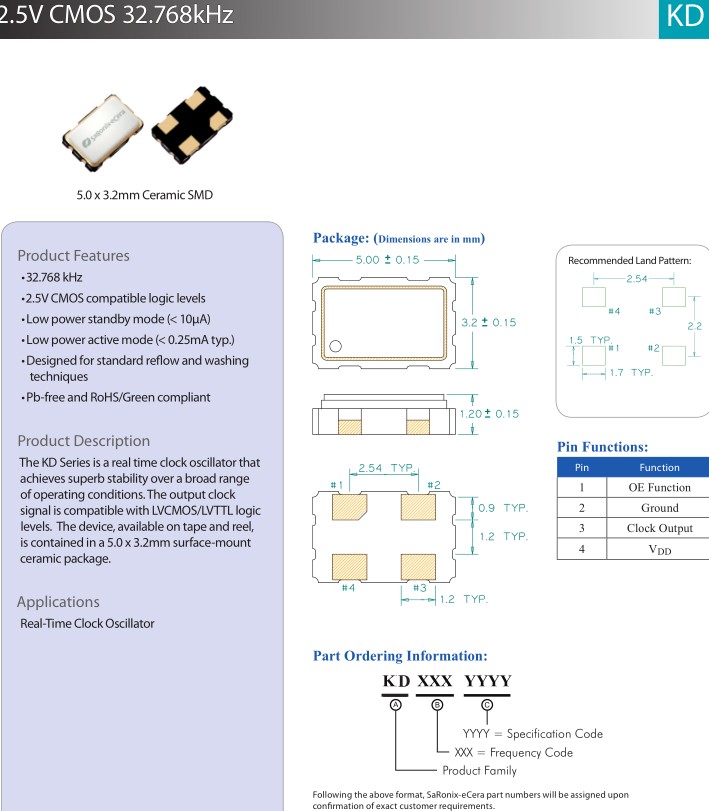 史無前例高性能的32.768K時鐘振蕩器KD3270037亞陶diodes晶振ECERA品牌
