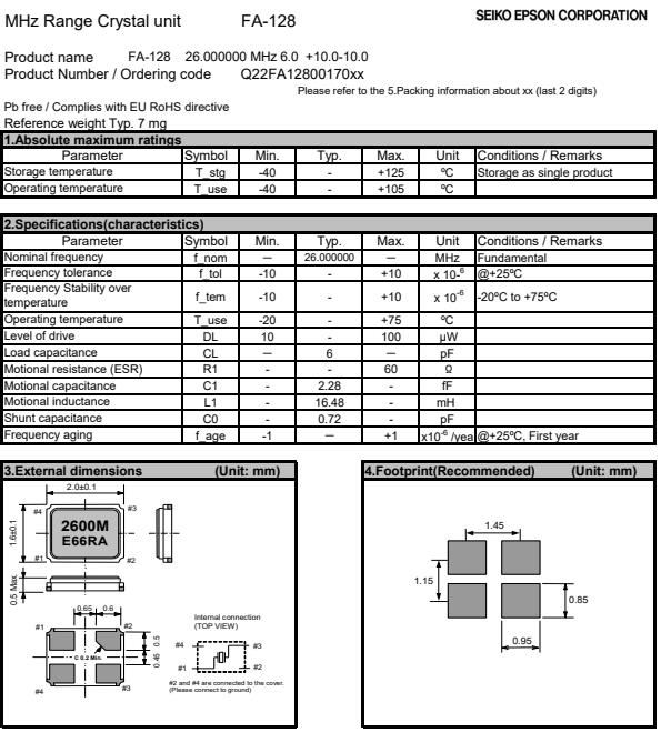 Q22FA1280017000 | 2 x 1.6 x 0.5mm | FA-128晶振 | 26.000000 MHz | 6 pF | +/-10 ppm |