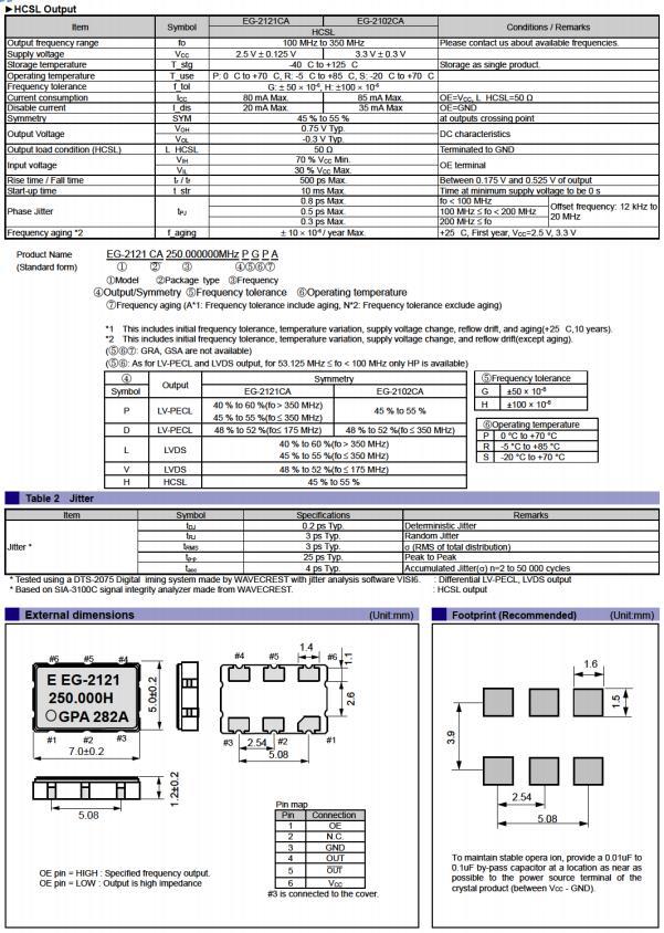Q3805CA10001100 | EG-2121CA | 125.000000 MHz | 7.00 x 5.00 x 1.20 mm | LVDS | 2.375 to 2.625 V | -5 to 85 °C |