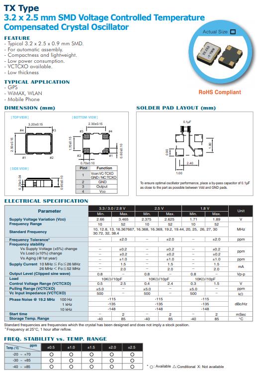 TXKADCSANF-19.200000 | Taitien | TX | VCTCXO | 19.2MHz | 1.8V |