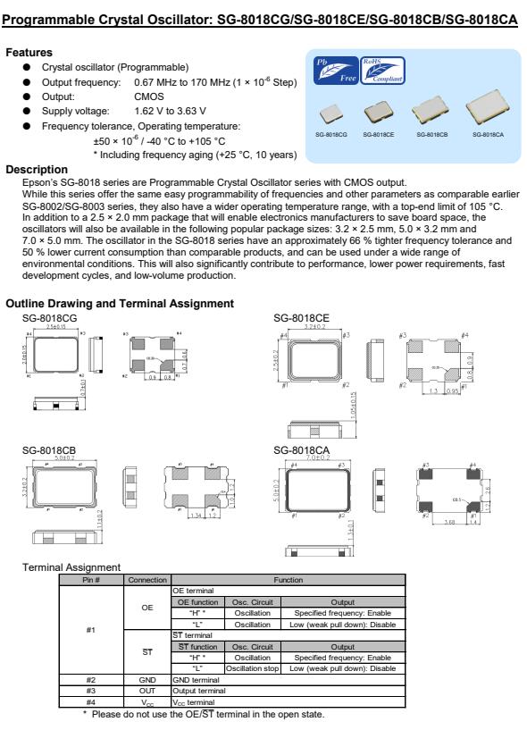 X1G005601004900 | SG-8018CG | 4.000000 MHz | 2.50 x 2.00 x 0.80 mm | CMOS | 1.620 to 3.630 V | -40 to 105 °C | +/-50 ppm | ≤ 3.5 mA |