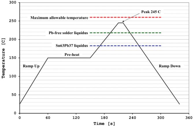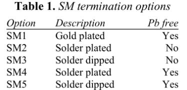 SM2和SM3端接含有Sn63Pb37焊料,而SM4和SM5端接含有無鉛錫基焊料。在這四種情況下,焊料回流曲線必須既熱到足以熔化終端焊料,又不會(huì)熱到損壞設(shè)備。
