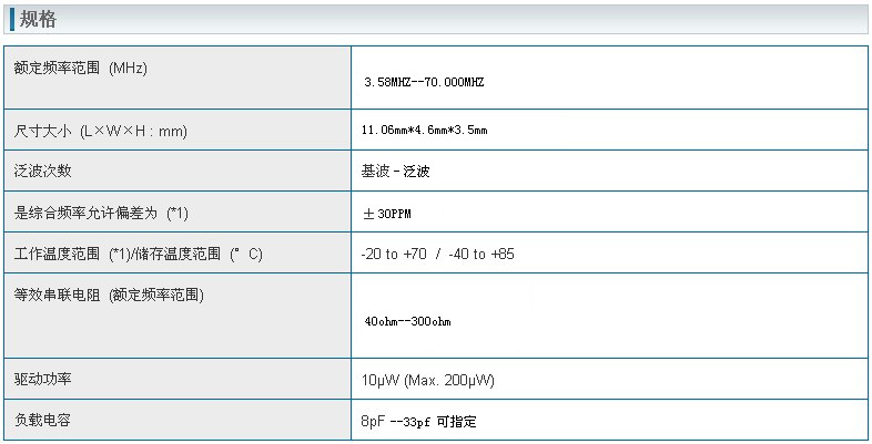 晶振規(guī)格