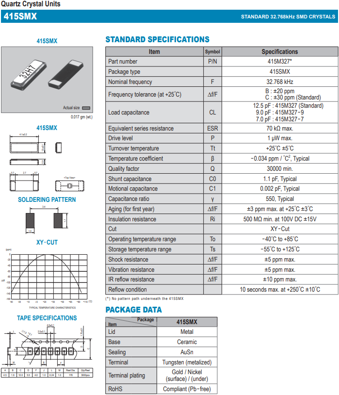 SMI晶振 | 單位 | 415SMX晶振 | 石英晶振基本條件 |