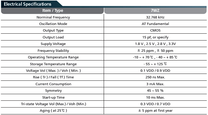 7WZ7050mm貼片晶振,32.768K有源晶振,TXC石英晶體振蕩器,滿足32.768khz RTC時鐘信號嚴格的公差要求,易于使用的SMD縫密封陶瓷外殼,4墊設計達到良好的焊接PCB上接觸,在晶體的諧振器使用良好的溫度性能,三態函數用于節電,通過無鉛認證/ Pb免費.