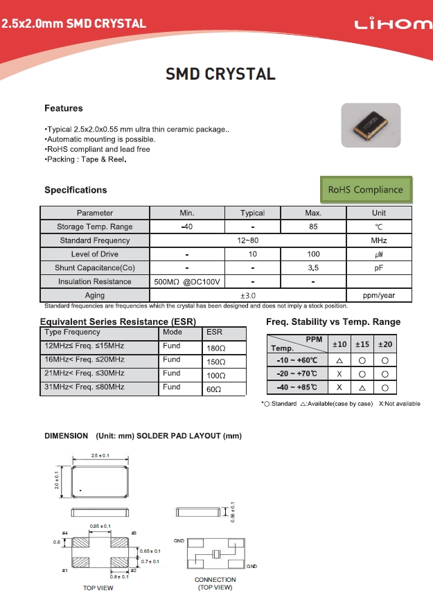 Lihom晶振 | 單位 | BMC-25晶振 | 石英晶振基本條件 |