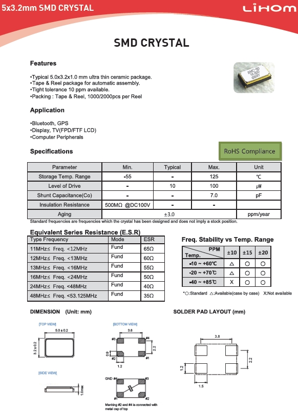 Lihom晶振 | 單位 | BMC-50晶振 | 石英晶振基本條件 |