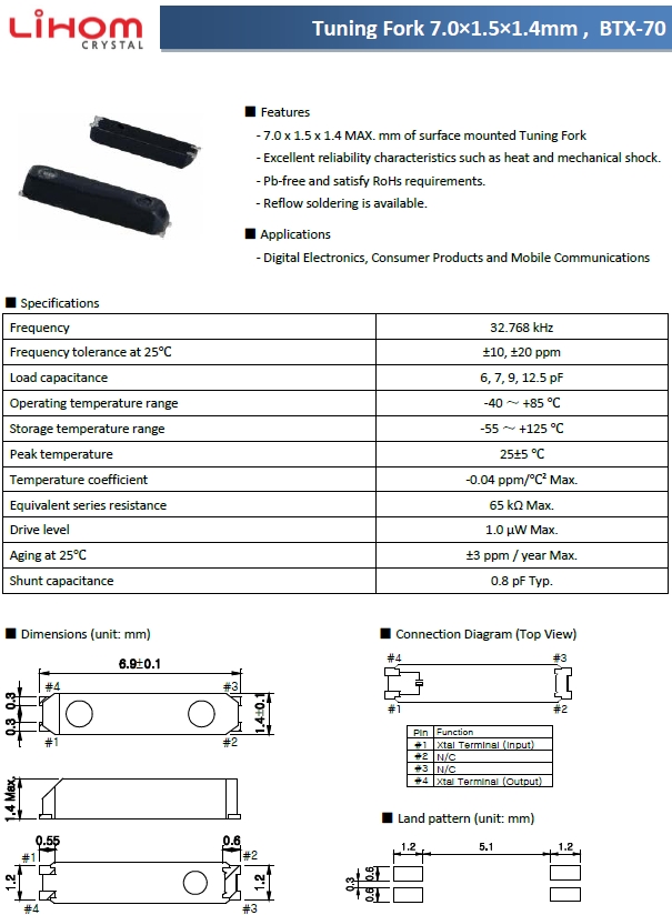 Lihom晶振 | 單位 | BTX-70晶振 | 石英晶振基本條件 |