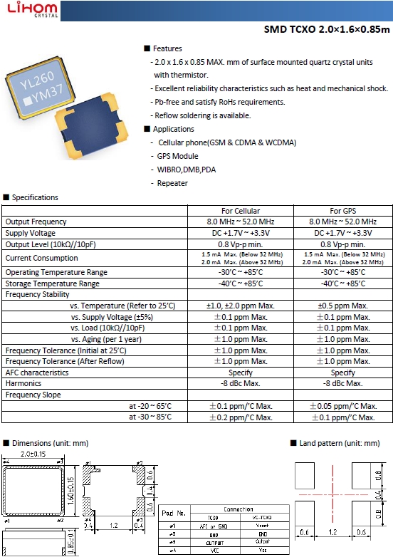 Lihom Crystal,溫補晶振,BXT-201(V)貼片晶振.貼片式石英晶體振蕩器,低電壓啟動功率,并且有多種電壓供選擇,比如有1.8V,2.5V,3.3V,3.8V,5V等,產品被廣泛應用于,平板筆記本,衛星系統,光纖通道,千兆以太網,串行ATA,串行連接SCSI,PCI-EXPress的SDH / SONET發射基站等領域.符合RoHS/無鉛.