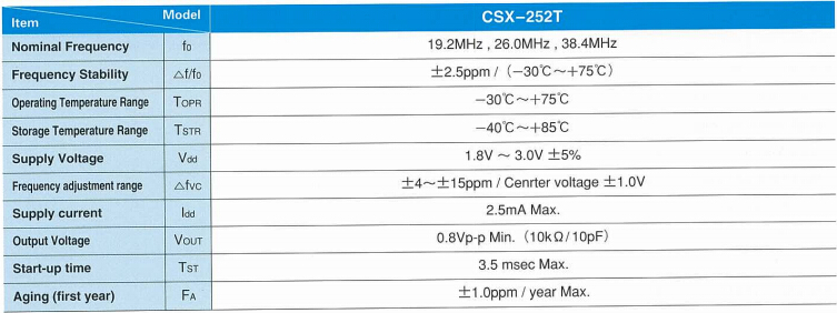CITIZEN晶振代理商,CSX-252T有源晶振,2520mm壓控振蕩器,高密度SMD類型2.5*2.0*1.0mm,頻率范圍19.2MHZ~38.4MHZ,滿足無鉛焊接的高溫回流溫度曲線要求,帶有AFC(頻率控制)功能,Enable/Disable功能,產品本身可根據使用需要進行選擇.