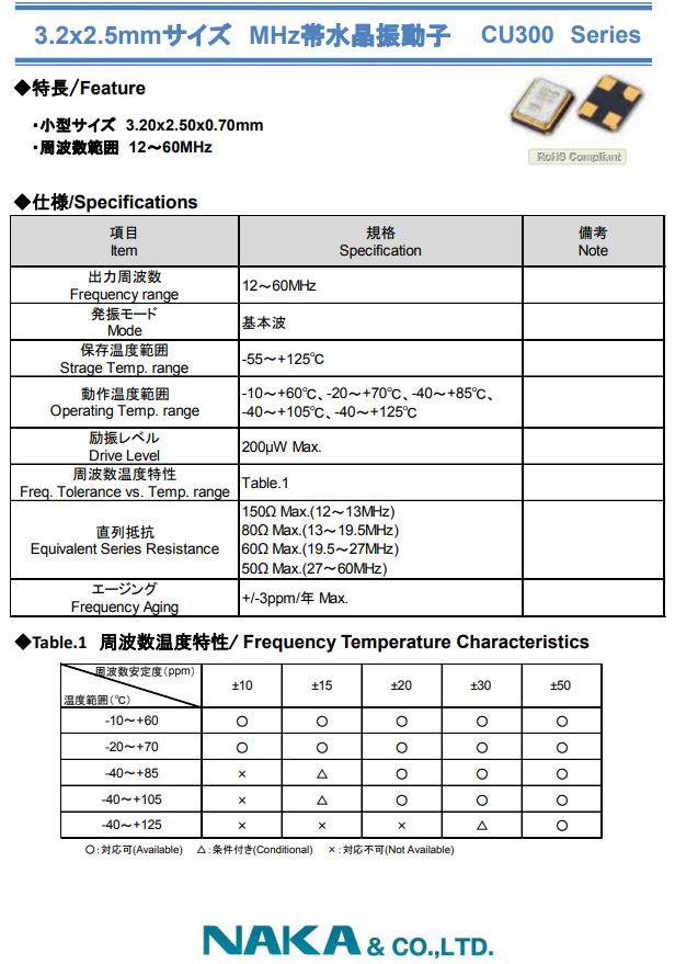 NAKA晶振 | 單位 | CU300晶振 | 石英晶振基本條件 |