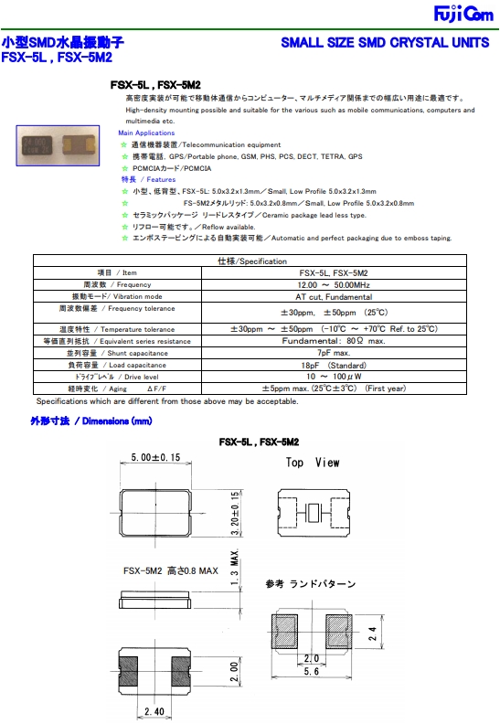 富士晶振 | 單位 | FSX-5L晶振 | 石英晶振基本條件 |