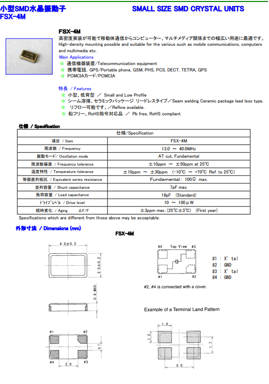 富士晶振 | 單位 | FSX-4M晶振 | 石英晶振基本條件 |