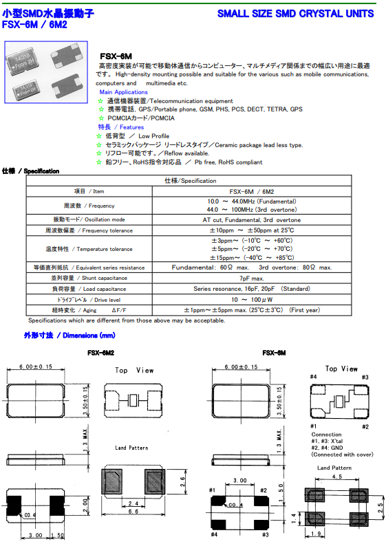 富士晶振 | 單位 | FSX-6M2晶振 | 石英晶振基本條件 |