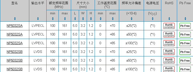 日本NDK晶振代理商,NP5032SA振蕩器,NP5032SB有源晶振,尺寸封裝5.0×3.2×1.2mm電源電壓2.5V~3.3V,LVDS輸出水平,低消費電流(36mA Typ.),低相位抖動(0.15ps Typ.@156.25MHz).