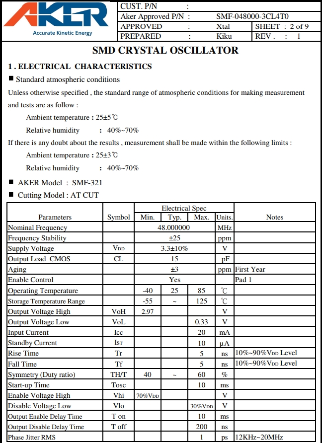 頻率 | 48MHz | 負(fù)載 | 15pF | 溫度范圍 | -40~ +85℃ |