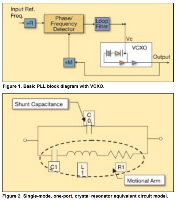 VCXO最常見的用途是PLL應用,例如如圖1所示。石英的電學等效電路VCXO中使用的晶體如圖2所示。C1、L1和R1被稱為晶體的運動參數,C0是分流電容。C0是真實的——它實際上可以用 一個簡單的電容計。運動臂參數,打開另一方面,它們是等效的,不容易測量。怎么水晶的大部分頻率被拉或偏離意志取決于C0/C1的比率。 等式1是復雜的,我們對虛數感興趣部分,稱為晶體的電抗曲線,為如圖3所示。