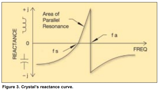 如圖3所示。 在圖3中,標記為fs的點是運動的電容C1諧振并抵消運動電感L1。校準到fs所需頻率的晶體稱為系列水晶。校準工作在平行區域的晶體共振稱為平行晶體。這里需要注意的是串聯晶體和并聯晶體沒有區別, 只有在制造商校準的地方。