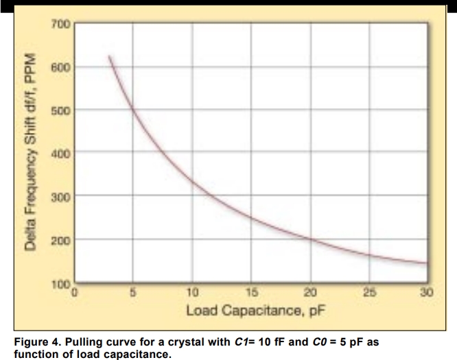 點fs到某個負載電容CL。等式2的曲線為 稱為晶體的提拉曲線,如圖4所示。從 等式2可以看出,C1越大,距離越大.